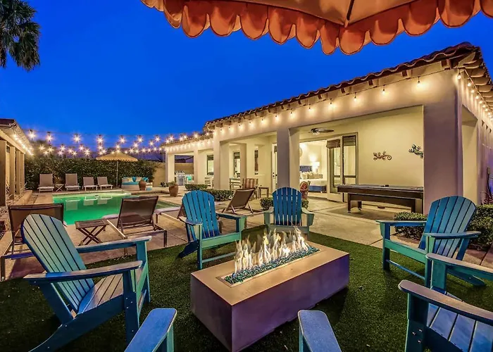 Along with Wi-Fi and a car park, Elegant Desert Oasis Near Coachella & Palm Springs Indio villa offers proximity to Civic Center Campus, located 10 minutes away by car.
